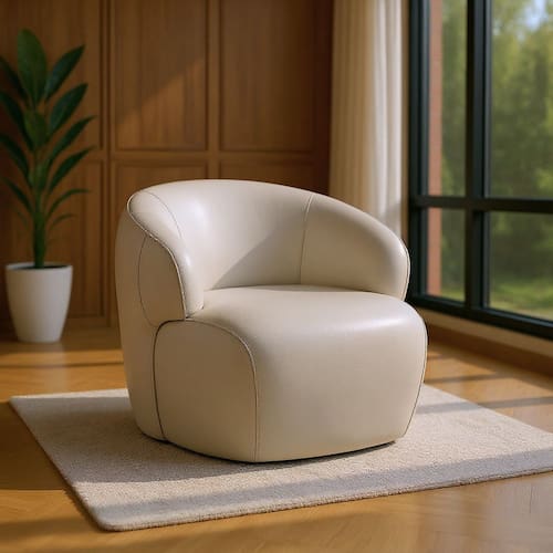 Informações Adicionais: Imagens ilustrativas, cores podem variar. Uso interno. Verifique embalagem no recebimento. Montagem por conta do cliente. Não realizamos subida. Garantia: 90 dias. Acompanha Almofadas extras: Não Acompanha Puff: Não Almofada do assento: Fixa Almofada do encosto: Não Possui Altura do assento até o chão: 42 cm Altura do Encosto: 36 cm Ambiente Principal: Sala de Estar codigo_ean: 7900288240651 Cor: Off White Cor do Produto: Off White Design Assinado: Não Enchimento do Assento: Espuma D-33 Enchimento do Braço: Espuma D-18 Encosto para a Cabeça: Não Estampado: Não Extensível: Não Firmeza do Assento: Médio Informações Complementares: Evitar exposição direta à luz solar, limpar com escova com pano úmido semanalmente, não utilizar produtos químicos, removedores, alvejantes, etc. Evite exercer pressão excessiva sobre determinada partes do estofado, não utilizar para limpeza equipamentos Itens Inclusos: 1 Poltrona Linha ou Coleção: Gana Marca: LEME MOVELARIA Material do Braço: COURO Modelo de Poltrona: Giratório Necessita Montagem: Não Origem do Produto: Nacional Peso: 15 kg Possui Percintas Elásticas: Sim Possui Pés: Não Recomendações de Uso, Manutenção e Limpeza: Pano limpo e levemente úmido Suporta Até (kg): 100 kg Tecido Predominante: Couro Tipo de Assento: Fixo Tipo de Encosto: Fixo Tipo de Espuma do Assento: Espuma Convencional Tipo de Poltrona: Decorativa