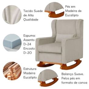 Perfeita para Amamentar, Descansar ou Relaxar. Seja no quarto do bebê, na sala ou no cantinho da leitura, essa poltrona é ideal para quem valoriza aconchego com estilo. O movimento de balanço suave ajuda acalmar seu bebê e também relaxa o corpo após um longo dia. A Aurora se adapta com facilidade, proporcionando um toque de elegância e bem-estar em qualquer espaço.