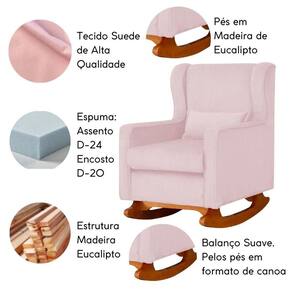 Poltrona De Descanso Com Balanço E Amamentar Aurora Suede Suede Rosê