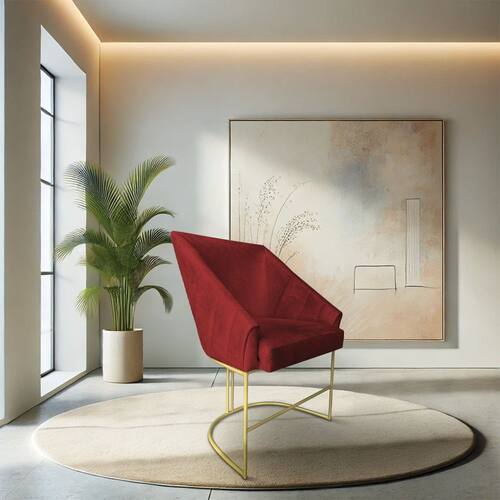 Com assento aconchegante e encosto ergonômico, a poltrona decorativa proporciona momentos de relaxamento e estilo. A base em ferro garante estabilidade e durabilidade, tornando-a uma poltrona moderna que une praticidade, beleza e funcionalidade, adaptando-se facilmente a diferentes estilos de decoração.