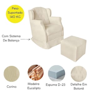 Corino, Espuma D-23, Madeira EucaliptoTransforme a amamentação em um momento especial com a poltrona de balanço com puff.
