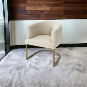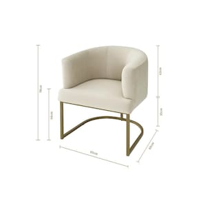 Poltrona Decorativa Arredondada Emi Base de Ferro Dourado em Veludo Estofama - Bege
