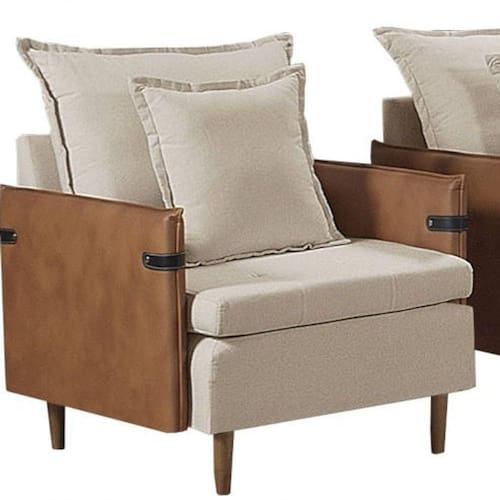 Perfeita essa linda poltrona decorativa para sua casa ou escritório. Com um toque de modernidade, foi produzida especialmente para deixar qualquer espaço mais leve, decorado e com um toque a mais de sofisticação. Possui um design diferenciado das demais poltronas, fazendo com que o ambiente fique muito mais moderno! Veja quantas vantagens: Confeccionada com Base e pés em madeira (madeira reflorestada com tratatamento anti-cupim, tratada e seca em estufa), possui assento em espuma D-33 soft que proporciona muito mais maciez e conforto.Assento e braços fixos. 2 almofadas soltas. Um grande diferencial dessa poltrona é você escolher a cor da parte dos braços e também a parte do assento. Você pode optar por 2 cores(como na foto) ou somente uma cor (para isso basta escolher o mesmo código do tecido para ambas as partes. Vamos deixar seu ambiente mais luxuoso? Nâo é isso que você quer?