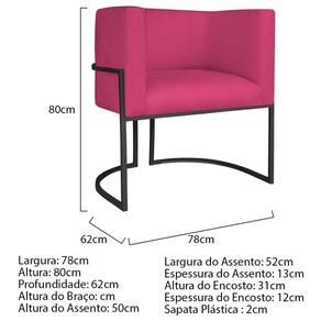 - Detalhes dos Pés: acompanha base de ferro, de alta resistência; Acompanha Almofadas extras: Não Acompanha Puff: Não Almofada do assento: Não Possui Almofada do encosto: Não Possui Altura do assento até o chão: 50 Altura do Encosto: 31 Altura dos Pés: 37.5 Ambiente Principal: Sala de Estar Cor: Pink/Preto Cor do Produto: Pink/Preto Design Assinado: Não Enchimento do Assento: Espuma D-18 Enchimento do Braço: Espuma D-18 Enchimento do Encosto: Espuma D-18 Encosto para a Cabeça: Não Estampado: Não Extensível: Não Firmeza do Assento: Firme Itens Inclusos: 1 Poltrona Linha ou Coleção: Munique Material do Braço: Madeira e espuma Material dos Pés: Metal Modelo de Poltrona: Fixo Necessita Montagem: Não Origem do Produto: Nacional Peso: 14 Possui Percintas Elásticas: Sim Possui Pés: 01 Possui Rodízio: Não Recomendações de Uso, Manutenção e Limpeza: Limpar com flanela limpa e seca. Não molhar o móvel e não expor em lugar úmido ou próximo de fontes de calor. Não usar produtos abrasivos. Resistente à Chuva: Não Suporta Até (kg): 120 Tecido Predominante: Suede Tipo de Assento: Fixo Tipo de Encosto: Fixo Tipo de Espuma do Assento: Espuma Convencional Tipo de Espuma do Encosto: Espuma Convencional Tipo de Poltrona: Decorativa Marca: Maranata Estofados Ean: 7909903458600