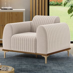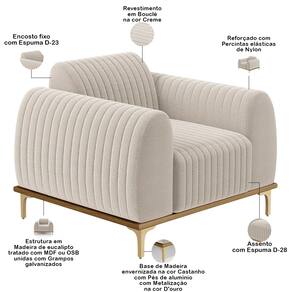 Com muita originalidade e personalidade a Poltrona Decorativa Base Madeira Pés Metalizados na cor D'Ouro Molino D02 da Lyam Decor vem para requintar ainda mais sua decoração. Bastante sofisticada, é ideal se você está buscando uma peça elegante e confortável. Possui acabamentos impecáveis, é estruturada em madeira de eucalipto tratado, unidas com grampos galvanizados, base envernizada e pés de alumínio na cor D’Ouro que a tornam ainda mais atraente e convidativa. Deixará qualquer ambientação maravilhosa, pode ser disposta em salas de estar ou comerciais, recepções, ambientes corporativos, hall de entrada, escritórios e antessalas, com ela as possibilidades são infinitas te deixando livre para criar arranjos incríveis sem medo de errar. É um presente que você merece!