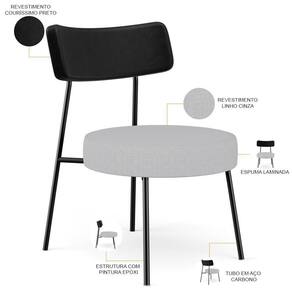 Poltrona Decorativa Para Sala De Estar Base Fixa Londres L02 Couríssimo Preto Linho Cinza - Lyam