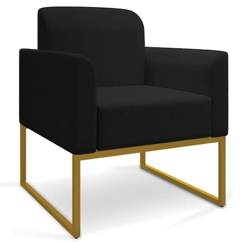 Poltrona Decorativa Base Industrial Dourada Maressa A79 Linho Preto - Ibiza