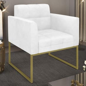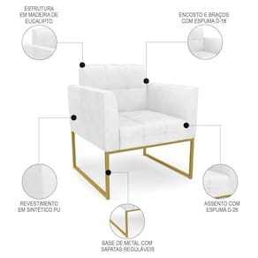 Você está procurando uma poltrona que combine com a sua Sala De Estar, recepção ou seu quarto, que ofereça conforto e qualidade? Então você vai adorar a Poltrona Decorativa Base Industrial Dourado Ana Sintético PU Branco, da Ibiza!