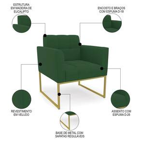 Você está procurando uma poltrona que combine com a sua Sala De Estar, recepção ou seu quarto, que ofereça conforto e qualidade? Então você vai adorar a Poltrona Decorativa Base Industrial Dourado Ana Veludo Verde, da Ibiza!