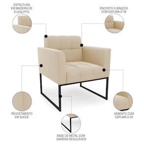 Você está procurando uma poltrona que combine com a sua Sala De Estar, recepção ou seu quarto, que ofereça conforto e qualidade? Então você vai adorar a Poltrona Decorativa Base Industrial Preto Ana Suede Bege, da Ibiza!