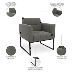 Você está procurando uma poltrona que combine com a sua Sala De Estar, recepção ou seu quarto, que ofereça conforto e qualidade? Então você vai adorar a Poltrona Decorativa Base Industrial Preto Ana Suede Grafite, da Ibiza!