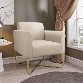 Isso mesmo! A Poltrona Decorativa Maressa Suede Bege da Ibiza, é produto super versátil que pode complementar seu lar proporcionando conforto e elegância na medida certa. Esse item lindo pode fazer parte da sala de estar, quarto, escritório ou ambientes corporativos, afinal seu design moderno combina com qualquer ambiente. Além do design incrível, ela possui estrutura em madeira de eucalipto e espuma de alta qualidade, tudo para garantir durabilidade e resistência. Ah, conta com base x dourado estilo industrial, assento reforçado com percintas elásticas e é revestida em tecido suede que transmite maciez ao toque. Ou seja, uma poltrona para sala imperdível!