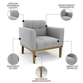 Você está procurando uma poltrona que combine com a sua Sala De Estar, recepção ou seu quarto, que ofereça conforto e qualidade? Então você vai adorar a Poltrona Decorativa Base Madeira Castanho Ana Suede Cinza, da Ibiza!