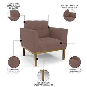 Você está procurando uma poltrona que combine com a sua Sala De Estar, recepção ou seu quarto, que ofereça conforto e qualidade? Então você vai adorar a Poltrona Decorativa Base Madeira Castanho Ana Veludo Rosê, da Ibiza!