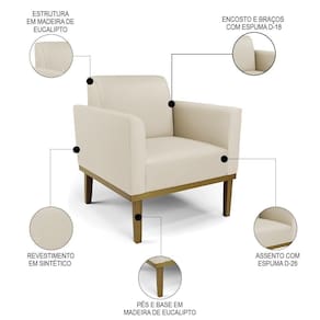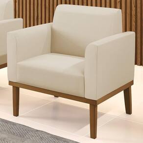Você está procurando uma poltrona que combine com a sua Sala De Estar, recepção ou seu quarto, que ofereça conforto e qualidade? Então você vai adorar a Poltrona Decorativa Base Madeira Castanho Maressa Sintético Bege, da Ibiza!