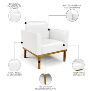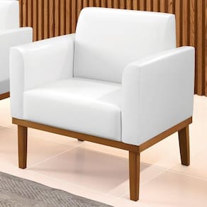 Você está procurando uma poltrona que combine com a sua Sala De Estar, recepção ou seu quarto, que ofereça conforto e qualidade? Então você vai adorar a Poltrona Decorativa Base Madeira Castanho Maressa Sintético PU Branco, da Ibiza!