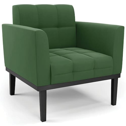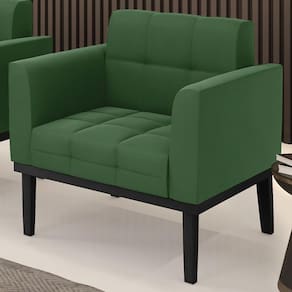 Você está procurando uma poltrona que combine com a sua Sala De Estar, recepção ou seu quarto, que ofereça conforto e qualidade? Então você vai adorar a Poltrona Decorativa Base Madeira Preto Ana Suede Verde, da Ibiza!