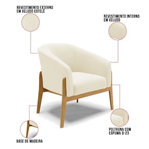 A Poltrona Decorativa Stella é a combinação perfeita de conforto, elegância e modernidade. Seu design curvo e marcante oferece uma sensação única de aconchego, como um abraço acolhedor, tornando-se a peça ideal para compor sua decoração com estilo e sofisticação. Revestida em veludo cotelê na cor Off White, a poltrona Stella apresenta um encosto com acabamento texturizado e volumoso interno que lembra um plissado, adicionando um toque elegante e alinhado às tendências atuais. Seja na sala de estar, quarto ou escritório, ela se adapta com facilidade. Sua estrutura robusta é sustentada por uma base de madeira (fixa), unindo resistência e design contemporâneo. A tendência desse estilo minimalista ganha destaque, conferindo sofisticação ao móvel, que é perfeito para qualquer espaço que exija funcionalidade e bom gosto. Com enchimento em espuma D-23 no encosto e assento, a Poltrona Decorativa Stella garante o máximo de conforto, mesmo em longos períodos de uso. Além desse modelo, também temos várias opções em base/pés e uma grande variedade de tecido/cores para atender ao seu estilo e conforto. E para deixar seu ambiente ainda mais harmonioso, oferecemos também kits especiais no mesmo design. Caso queira ajuda para escolher a melhor opção para o seu espaço, estamos à disposição!