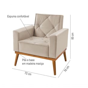 Poltrona Bella é aquele toque de elegância que falta em seu ambiente. A Poltrona Bella é produzida com madeira de eucalipto tratada e com espumas de alta qualidade, fazendo com que você cliente tenha um produto que não irá se arrepender. Sem contar a beleza inerente dela, dando aquele charme especial, fazendo com que você receba muitos elogios, sem falar que os pés e a Base é em madeira maçiça, e costura prespontadas, unindo beleza e qualidade.