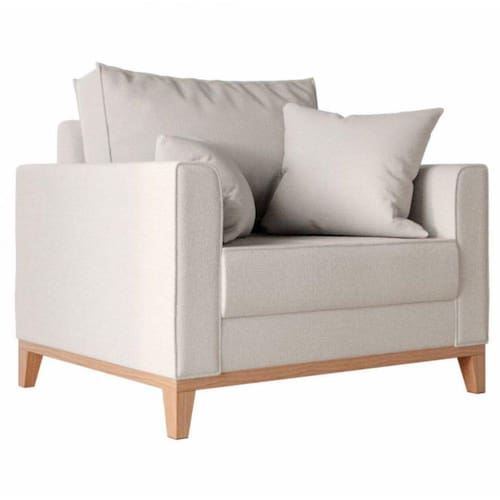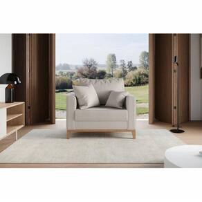 A Poltrona Decorativa Benny Em Tecido Linho Com Pés Em Madeira é mais que uma peça