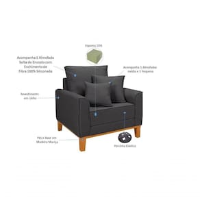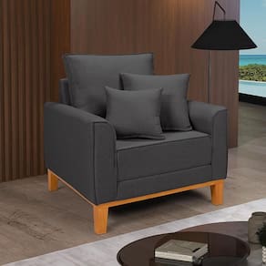 Poltrona Decorativa Beny Reforçada Para Sala De Estar Linho Grafite 199
