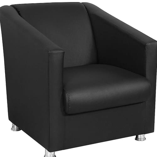 Produto: Poltrona Decorativa | Cor: Corino Preto | Tonalidade: Colorido | Cômodo Indicado: Salas | Material Da Estrutura: Madeira de Eucalipto E Espuma em D-26 Cor: Corino Preto