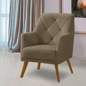 CARACTERISTICAS: - Revestimento: veludo; - Assento e Encosto: fixos; - Estofamento do Assento: espuma D23 macia; - Estofamento do Encosto: espuma D23; - Possui percintas elásticas; - Material da Estrutura: Madeira maciça proveniente de reflorestamento; - Pés em madeira de eucalipto proveniente de reflorestamento;