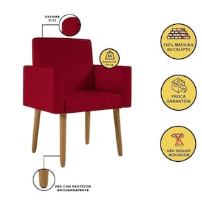 Tipo De Produto: Poltrona | Desenho Do Tecido: Liso | Estilo: Clássico | Cor Dos Pés: Caramelo | Unidades Por Kit: 2 | Altura: 87 cm | Marca: B BALAQUI DECOR | Tipo de Garantia: Garantia do Fabricante | Coleção de Antiguidade: Não | Móvel Dobrável: Não | Dimensão (A x L x C): 87 x 61 x 60 | Estofado: Suede | Número de Assentos: 1 | Duração da Garantia: 3 meses | Largura: 61 cm | País de Origem: Brasil | Profundidade: 60 cm | Peso do Item (itemWeight): 9,5 kg | Material: Madeira | Fabricante: Balaqui Estofados | Montagem: Montagem completa | Peso Suportado: 100 kg Cor: Vermelho