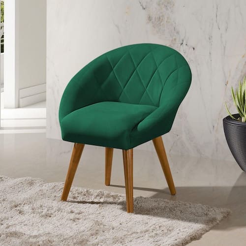 AS IMAGENS SÃO MERAMENTE ILUSTRATIVAS E PODEM SOFRER VARIAÇÕES DE COR E PEQUENOS DETALHES DE ACORDO COM O SEU MONITOR, ILUMINAÇÃO DO AMBIENTE E ATÉ MESMO A SUA PERCEPÇÃO VISUAL.Poltrona Decorativa Canastra Estofada Veludo Verde Esmeralda PÃs Palito em Madeira MaciÃa