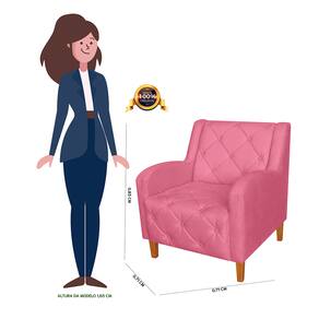 Poltrona Decorativa Com Capitone Para Quarto Munique Suede Rosa Barbie - LM DECOR