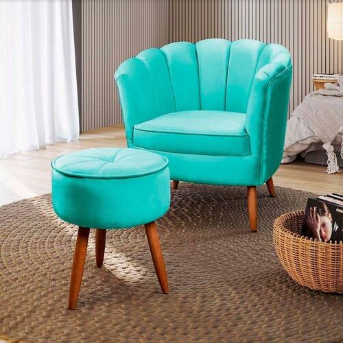 Poltrona Decorativa Ariel Com Pés De Madeira Speciale Home Ciano Poltrona Decorativa Ariel com Pés de Madeira Speciale Home