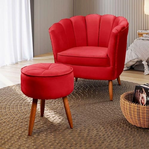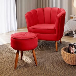 Poltrona Decorativa Ariel Com Pés De Madeira Speciale Home Vermelho Poltrona Decorativa Ariel com Pés de Madeira Speciale Home
