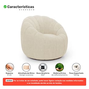 Com estrutura em madeira de eucalipto reflorestada, o conjunto é resistente e durável. A espuma D-24 oferece conforto no uso diário, enquanto o revestimento em bouclê traz sofisticação e textura macia. A base giratória 360° da poltrona garante praticidade, e o conjunto vai montado, pronto para uso. Como toque final, uma almofada vai como mimo para você.