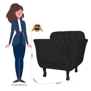 Poltrona Decorativa Dália Suede Preto Pés Madeira Mz Decor