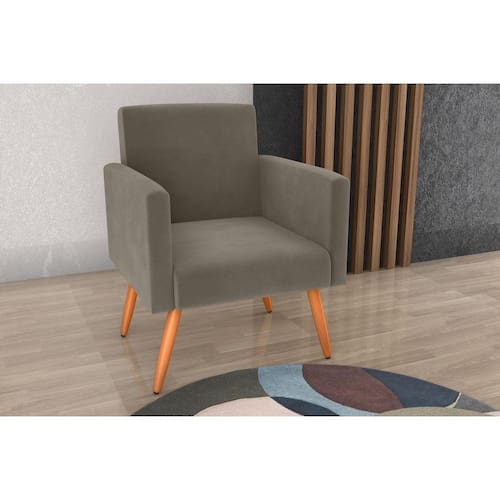 Poltrona Decorativa Dallas Veludo Cappuccino E434 - Matrix - Mostarda