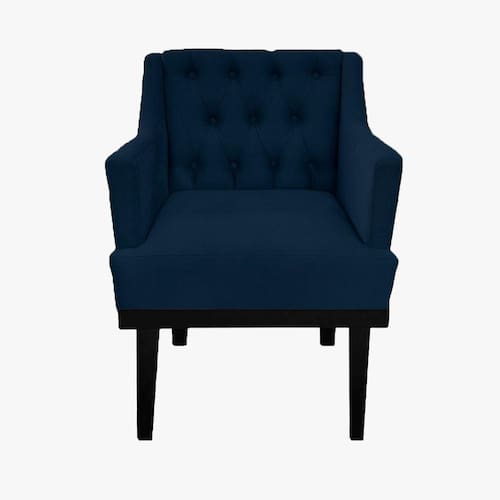 Poltrona Decorativa Em Capitonê Para Quarto e Closet Classica Suede Azul Marinho LM DECOR