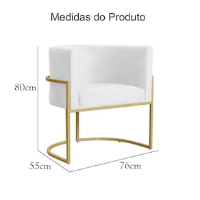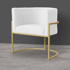Poltrona Decorativa Estofada Base de Ferro Sala Luana Suede Branco - LM DECOR