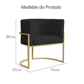 Poltrona Decorativa Estofada Base de Ferro Sala Luana Suede Preto - LM DECOR
