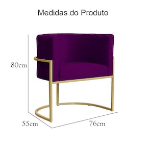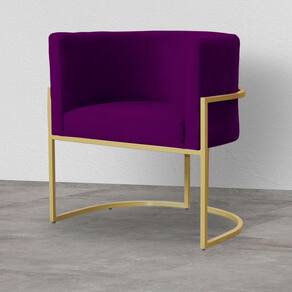 Poltrona Decorativa Estofada Base de Ferro Sala Luana Veludo Roxo - LM DECOR