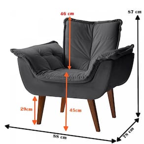 Poltrona Eros: decoração e conforto é a definição desta poltrona. A dimensão é uma das maiores do mercado em sua categoria. Encosto com espuma D26 certificada. O assento com espuma D28 certificada que se estende aos braços e percinta elástica de alta resistência na base do assento. A estrutura em madeira maciça de eucalipto, seca e imunizada. O desenho frontal e traseiro são de MDF 15mm. Os pés são de madeira maciça e o sistema de montagem dos pés com cantoneira de fixação em aço e parafusos brocantes que proporcionam firmeza e consistência. Acompanha Almofadas extras: Não Acompanha Puff: Não Almofada do assento: Fixa Almofada do encosto: Fixa Altura do assento até o chão: 45 cm Altura do Encosto: 46 cm Altura dos Pés: 29 cm Ambiente Principal: Sala de Estar Complexidade da Montagem: Baixa: pode ser montado por uma pessoa sozinha Cor: JOLIE GRAFITE Cor do Produto: JOLIE GRAFITE Design Assinado: Não Enchimento do Assento: Espuma D-28 Enchimento do Braço: Espuma D-28 Enchimento do Encosto: Espuma D-28 Encosto para a Cabeça: Não Estampado: Não Extensível: Não Firmeza do Assento: Médio Itens Inclusos: 1 Poltrona, Kit Pés e Manual de Montagem Manual de Montagem e Instalação: https://cdn2.madeiramadeira.com.br/prd/montano-estofados/845020-poltrona-eros-montagem.pdf Material do Braço: Madeira maciça, MDF, espuma, pet fon e tecido Material dos Pés: Madeira Maciça tratada Modelo de Poltrona: Fixo Necessita Montagem: Sim Origem do Produto: Nacional Peso: 15,5 kg Possui Percintas Elásticas: Sim Possui Pés: 04 Possui Rodízio: Não Recomendações de Uso, Manutenção e Limpeza: A limpeza do revestimento deve ser feita com escova ou tecido de algodão branco levemente umedecidos em água morna, sabão neutro ou produto específico. Não usar produtos corrosivos nem a base de solventes, como: cloro, alvejantes, detergentes, entre outros;Não expor o estofado à luz direta. Mantenha portas e janelas sempre protegidas com cortinas e blackout. A exposição contínua à radiação da luz, danifica o revestimento, apodrecendo os fios, trincando a superfície e desbotando as cores;Não lavar o revestimento das almofadas pois pode desfiá-las, abrindo as costuras;Não utilizar o estofado para fins diferentes do que foi projetado: ficar em pé, pular, arrastar, sentar nos braços, peso na caixa traseira, entre outros tipos de ações que poderão danificar o produto. Sistema de Montagem: pés e parafusos Suporta Até (kg): 120 kg Tamanho: Tecido Predominante: Veludo Tipo de Assento: Fixo Tipo de Encosto: Fixo Tipo de Espuma do Assento: Soft Tipo de Espuma do Encosto: Soft Tipo de Poltrona: Decorativa