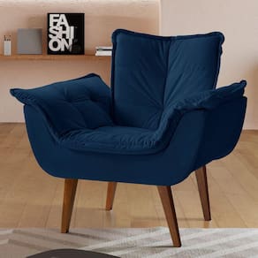 Poltrona Decorativa Estofada Eros Montana Estofados Veludo Azul Marinho - Azul Doce
