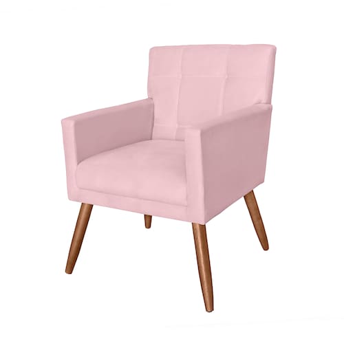 Poltrona Decorativa Estofada Para Hall de Entrada Onix Corano Rosa Bebe - LM DECOR