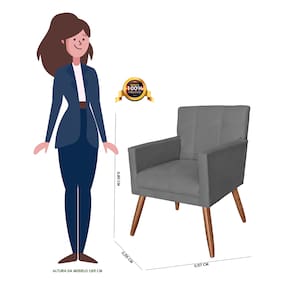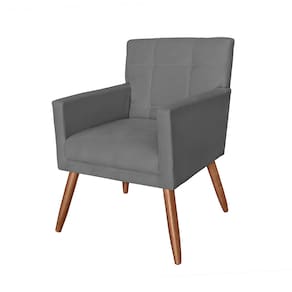 Poltrona Decorativa Estofada Para Hall de Entrada Onix Suede Cinza - LM DECOR