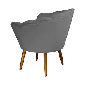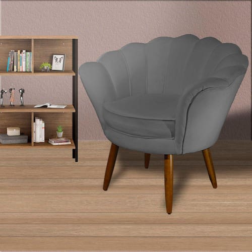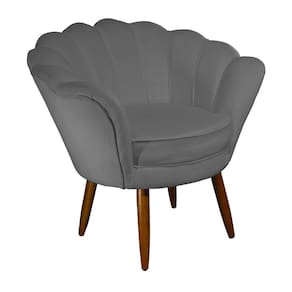 Poltrona Decorativa Estofada Para Hall de Entrada Pétala Suede Cinza - LM DECOR