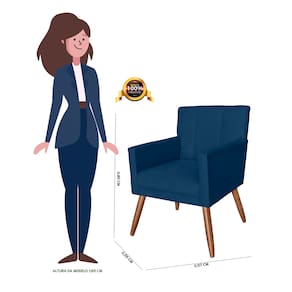 Poltrona Decorativa Estofada Pés Palito Para Escritório Onix Suede Azul Marinho - LM DECOR