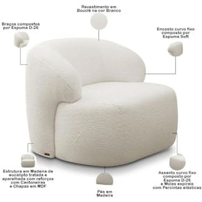 Poltrona Decorativa Fixa Orgânica para Sala Living Barolo L06 Bouclê Branco - GTDNEXXUS