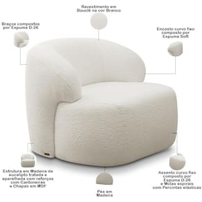 A Poltrona Decorativa Fixa Orgânica Para Sala Living Barolo L06 Bouclê Branco, da Lyam Decor, é a escolha perfeita para quem procura um design moderno para sua sala de estar ou living.