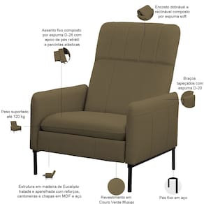 Conheça a Poltrona Fixa Lutor, da Lyam Decor, o estofado que vai transformar qualquer ambiente da sua casa! Com um design moderno e elegante, essa peça é perfeita para compor sua sala de estar, quarto ou até mesmo aquele cantinho especial de leitura. Seu encosto dobrável e reclinável proporciona o conforto que você precisa, enquanto o apoio de pés retrátil garante momentos de relaxamento absoluto. Revestida em couro de alta qualidade e tapeçaria com espuma de alta densidade, essa poltrona reclinável não é apenas um convite ao descanso, mas também uma adição sofisticada à sua decoração. Os pés metálicos conferem um toque contemporâneo e robustez à peça, assegurando durabilidade e estilo. Então, invista em conforto e beleza com essa poltrona decorativa ? um verdadeiro destaque para diversos ambientes da sua casa!