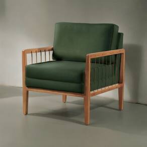 Verificar dimensões para acesso ao local de uso Acompanha Almofadas extras: Não Acompanha Puff: Não Almofada do assento: Não Possui Almofada do encosto: Removível Altura do assento até o chão: 42 cm Altura do Encosto: 31 cm Altura dos Pés: 26 cm Ambiente Principal: Sala de Estar Cor: Verde Cor do Produto: Verde Design Assinado: Não Enchimento do Braço: Não Possui Encosto para a Cabeça: Não Estampado: Não Extensível: Não Informações Complementares: Braços em madeira maciça e acabamento com corda. Itens Inclusos: 1 Poltrona Linha ou Coleção: PREMIUM Material do Braço: Madeira Maciça Material dos Pés: Madeira Maciça Modelo de Poltrona: Fixo Necessita Montagem: Não Origem do Produto: Nacional Peso: 21 kg Possui Percintas Elásticas: Sim Possui Pés: 04 Possui Rodízio: Não Recomendações de Uso, Manutenção e Limpeza: Utilizar um pano levemente umedecido, seguido de pano seco.Evitar exposição ao sol, para que não sofra alterações na cor do tecido.Não limpar com escovas ou semelhantes. Suporta Até (kg): 140 kg Tecido Predominante: Veludo Tipo de Assento: Fixo Tipo de Encosto: Fixo Tipo de Poltrona: Decorativa