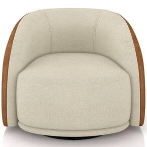 Características: Estrutura em madeira de reflorestamento de eucalipto, pinus e placas de OSB e imunizada contra mofo, cupim e microorganismos. Revestimento em Bouclê na cor Bege e Couríssimo Whisky. Encosto e assento com cintas elásticas de sustentação de alta resistência. Assento, encosto e braças com espuma D-26 e manta acrílica. Base giratória de metal preto. Peso suportado: Até 120 kg.